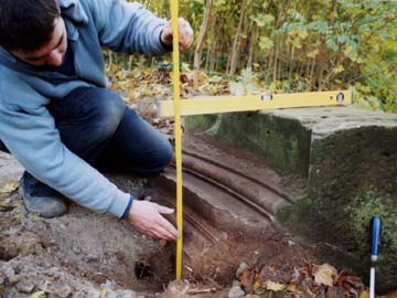 Luisentor: Die Sockel für das Lusitentor werden freigelegt und erhalten ein neues Fundament. Das Tor, eine schmiedeeiserne Konstruktion ging verloren. Auffallend ist die Profilierung des Sandsteins, was auf eine noch frühere Verwendung des Materials schließen lässt.