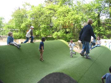 Welle: Ein mulitfunktionales Spielelement mit hoher Attraktivität. Ob alleine oder in der Gruppe, alles ist in Bewegung. Ausbaufähig mit Tunnel. Konstruktion wetterfest und verschleißfrei durch Kunststoffrasen.